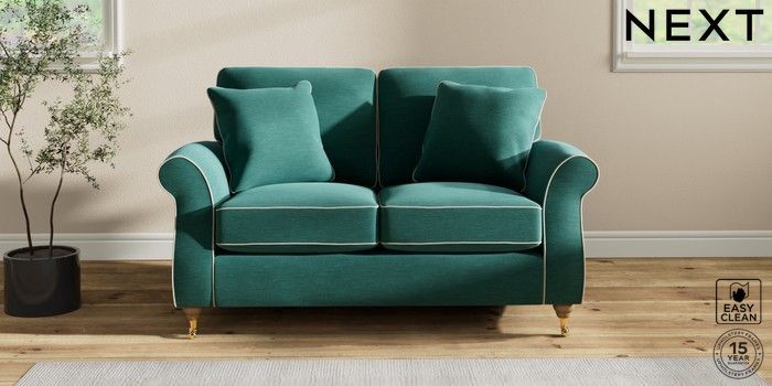 7.3.1 Buy Ashford 2 Seater Small Sofa Fine Chenille with Contrast Dark Juniper Green and Oyster Castor - Light from the Seasons online shop Click here to use our website with more accessibility support, for example screen readers