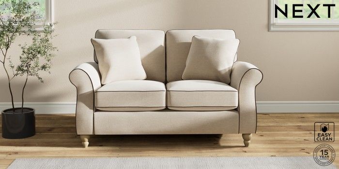 7.3.1 Buy Ashford 2 Seater Small Sofa Fine Chenille with Contrast Oyster and Chocolate Brown Low Turned - Light from the Seasons online shop Click here to use our website with more accessibility support, for example screen readers