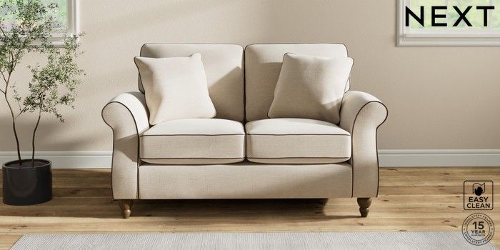 7.3.1 Buy Ashford 2 Seater Small Sofa Fine Chenille with Contrast Oyster and Chocolate Brown Low Turned - Mid from the Seasons online shop Click here to use our website with more accessibility support, for example screen readers