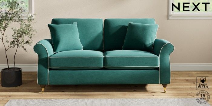 7.3.1 Buy Ashford 2 Seater Sofa Fine Chenille with Contrast Dark Juniper Green and Oyster Castor - Mid from the Seasons online shop Click here to use our website with more accessibility support, for example screen readers