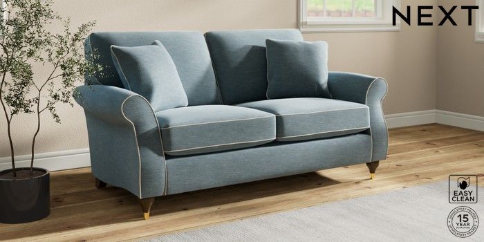 7.3.1 Buy Ashford 2 Seater Sofa Fine Chenille with Contrast Mid Blue and Oyster Modern Turned Metal Cap - Mid from the Seasons online shop Click here to use our website with more accessibility support, for example screen readers