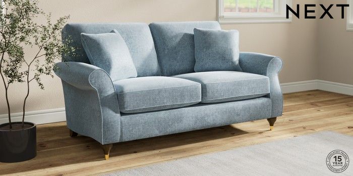 7.2.10 Buy Ashford 2 Seater Sofa Plush Chenille Light Blue Modern Turned Metal Cap - Mid from the Seasons online shop Click here to use our website with more accessibility support, for example screen readers