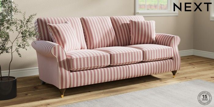 7.3.1 Buy Ashford 3 Cushion 3 Seater Sofa Bold Chenille Stripe Dark Pink Modern Turned Metal Cap - Mid from the Seasons online shop Click here to use our website with more accessibility support, for example screen readers