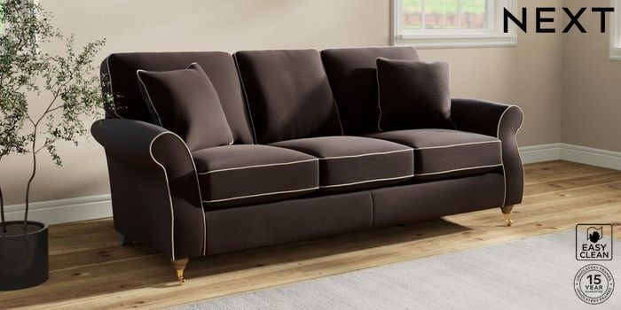 7.3.1 Buy Ashford 3 Cushion 3 Seater Sofa Fine Chenille with Contrast Chocolate Brown and Oyster Castor - Light from the Seasons online shop Click here to use our website with more accessibility support, for example screen readers