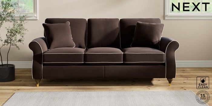 7.3.1 Buy Ashford 3 Cushion 3 Seater Sofa Fine Chenille with Contrast Chocolate Brown and Oyster Modern Turned Metal Cap - Mid from the Seasons online shop