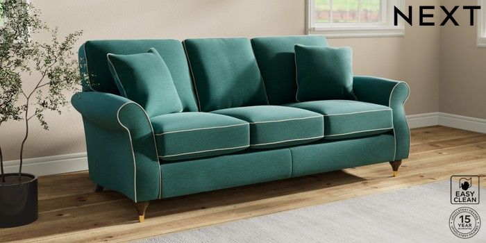 7.3.1 Buy Ashford 3 Cushion 3 Seater Sofa Fine Chenille with Contrast Dark Juniper Green and Oyster Modern Turned Metal Cap - Mid from the Seasons online shop
