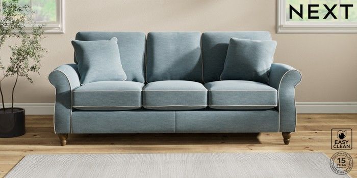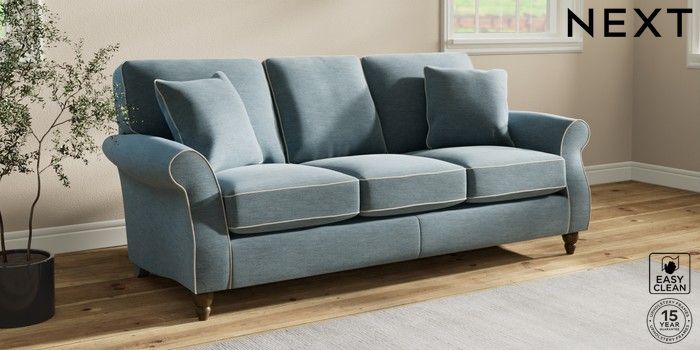 7.3.1 Buy Ashford 3 Cushion 3 Seater Sofa Fine Chenille with Contrast Mid Blue and Oyster Low Turned - Mid from the Seasons online shop Click here to use our website with more accessibility support, for example screen readers