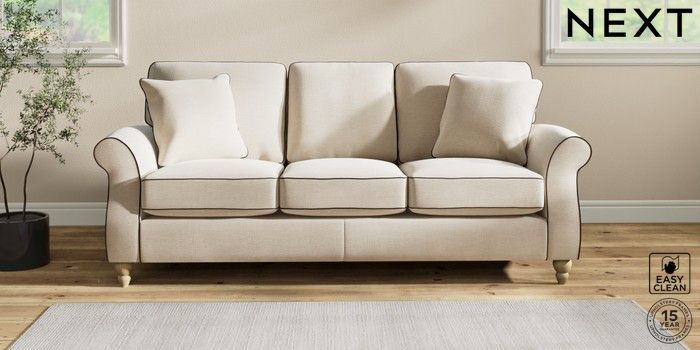 7.3.1 Buy Ashford 3 Cushion 3 Seater Sofa Fine Chenille with Contrast Oyster and Chocolate Brown Low Turned - Light from the Seasons online shop Click here to use our website with more accessibility support, for example screen readers