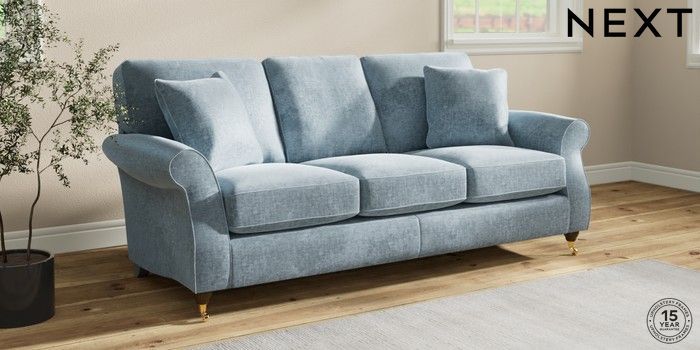 7.2.10 Buy Ashford 3 Cushion 3 Seater Sofa Plush Chenille Light Blue Castor - Mid from the Seasons online shop Click here to use our website with more accessibility support, for example screen readers