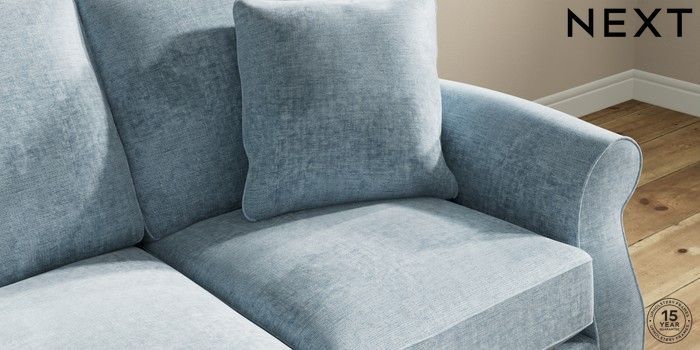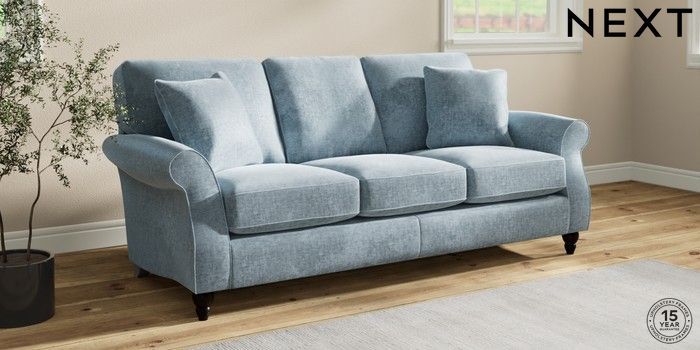 7.2.10 Buy Ashford 3 Cushion 3 Seater Sofa Plush Chenille Light Blue Low Turned - Dark from the Seasons online shop Click here to use our website with more accessibility support, for example screen readers