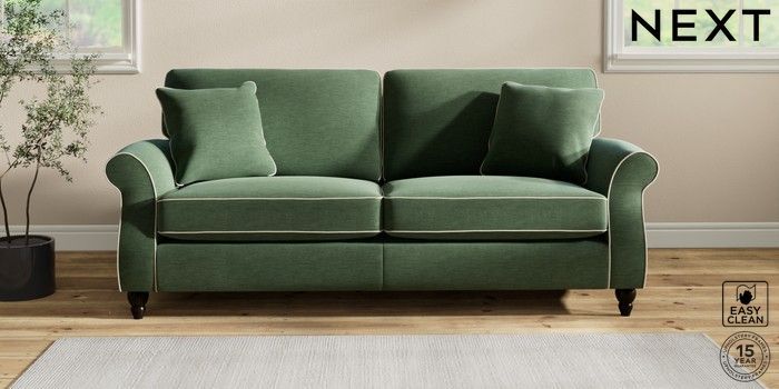 7.3.1 Buy Ashford 3 Seater Sofa Fine Chenille with Contrast Mid Khaki Green and Oyster Low Turned - Dark from the Seasons online shop Click here to use our website with more accessibility support, for example screen readers