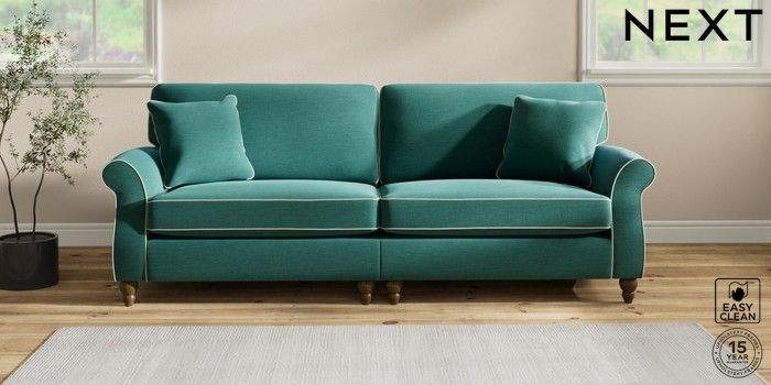 7.3.1 Buy Ashford 4 Seater Sofa Fine Chenille with Contrast Dark Juniper Green and Oyster Low Turned - Mid from the Seasons online shop Click here to use our website with more accessibility support, for example screen readers