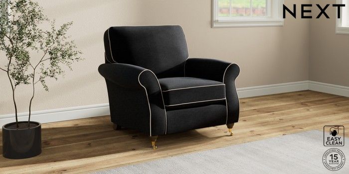 7.3.1 Buy Ashford Armchair Fine Chenille with Contrast Black and Oyster Castor - Mid from the Seasons online shop Click here to use our website with more accessibility support, for example screen readers