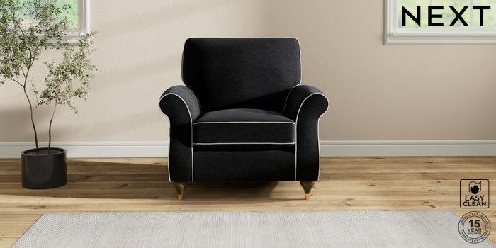 7.3.1 Buy Ashford Armchair Fine Chenille with Contrast Black and Oyster Modern Turned Metal Cap - Mid from the Seasons online shop Click here to use our website with more accessibility support, for example screen readers