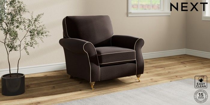 7.3.1 Buy Ashford Armchair Fine Chenille with Contrast Chocolate Brown and Oyster Castor - Light from the Seasons online shop Click here to use our website with more accessibility support, for example screen readers