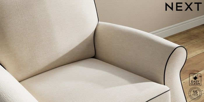 A chunky, hardwearing fabric with a timeless look which can tackle most household stains by blotting or gently wiping the fabric with water and a mild detergent. This Fabric is covered by the Quality Fabric Kitemark