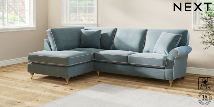 7.3.1 Buy Ashford Medium Corner Chaise - Left Hand Fine Chenille with Contrast Mid Blue and Oyster Castor - Light from the Seasons online shop Click here to use our website with more accessibility support, for example screen readers