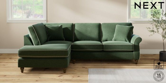 7.3.1 Buy Ashford Medium Corner Chaise - Left Hand Fine Chenille with Contrast Mid Khaki Green and Oyster Low Turned - Mid from the Seasons online shop Click here to use our website with more accessibility support, for example screen readers