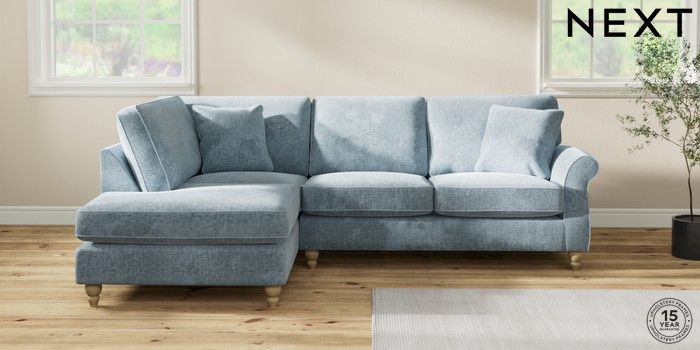 7.2.10 Buy Ashford Medium Corner Chaise - Left Hand Plush Chenille Light Blue Low Turned - Light from the Seasons online shop Click here to use our website with more accessibility support, for example screen readers
