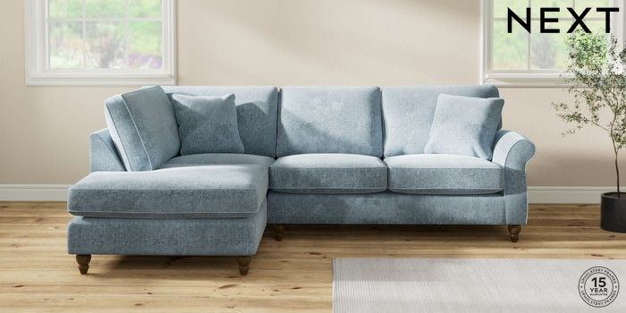 7.2.10 Buy Ashford Medium Corner Chaise - Left Hand Plush Chenille Light Blue Low Turned - Mid from the Seasons online shop Click here to use our website with more accessibility support, for example screen readers