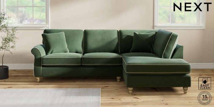 7.3.1 Buy Ashford Medium Corner Chaise - Right Hand Fine Chenille with Contrast Mid Khaki Green and Oyster Low Turned - Light from the Seasons online shop Click here to use our website with more accessibility support, for example screen readers