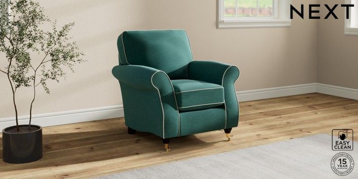 7.3.1 Buy Ashford Small Armchair Fine Chenille with Contrast Dark Juniper Green and Oyster Castor - Dark from the Seasons online shop Click here to use our website with more accessibility support, for example screen readers