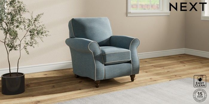 7.3.1 Buy Ashford Small Armchair Fine Chenille with Contrast Mid Blue and Oyster Low Turned - Mid from the Seasons online shop Click here to use our website with more accessibility support, for example screen readers