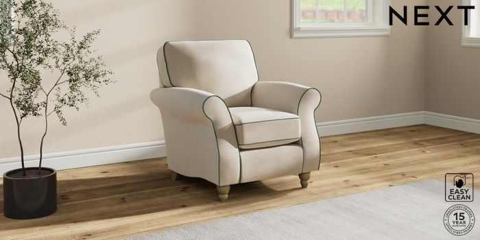 7.3.1 Buy Ashford Small Armchair Fine Chenille with Contrast Oyster and Dark Juniper Green Low Turned - Light from the Seasons online shop Click here to use our website with more accessibility support, for example screen readers