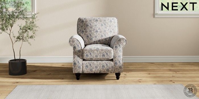 7.3.1 Buy Ashford Small Armchair Relaxed Linen Look Print Woodblock Floral Blue Low Turned - Dark from the Seasons online shop