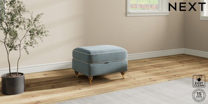 7.3.1 Buy Ashford Storage Footstool Fine Chenille with Contrast Mid Blue and Oyster Castor - Light from the Seasons online shop Click here to use our website with more accessibility support, for example screen readers