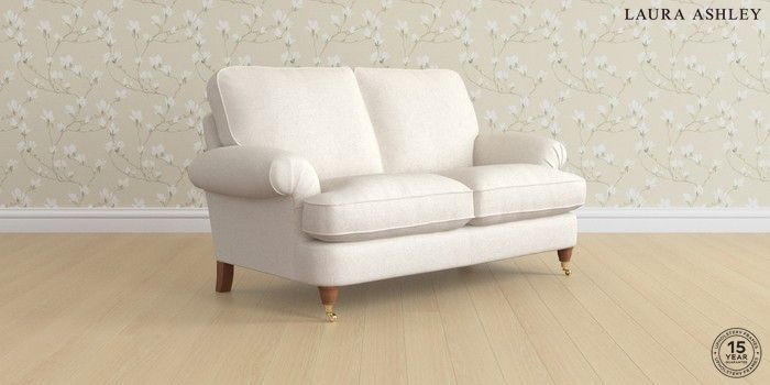 7.3.1 Buy Beaumaris by Laura Ashley 2 Seater Sofa Anneliese Oyster Natural Low Brass Castor - Teak from the Seasons online shop Click here to use our website with more accessibility support, for example screen readers
