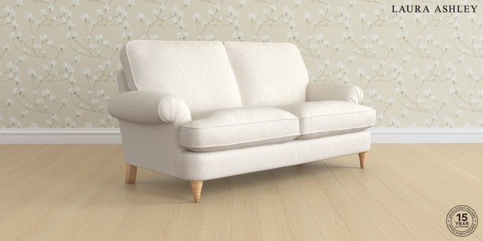 7.3.1 Buy Beaumaris by Laura Ashley 3 Seater Small Sofa Anneliese Oyster Natural Low Turned - Light Oak from the Seasons online shop Click here to use our website with more accessibility support, for example screen readers