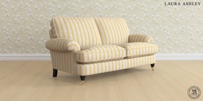 7.3.1 Buy Beaumaris by Laura Ashley 3 Seater Small Sofa Kinsham Stripe Ochre Yellow Low Brass Castor - Black from the Seasons online shop Click here to use our website with more accessibility support, for example screen readers