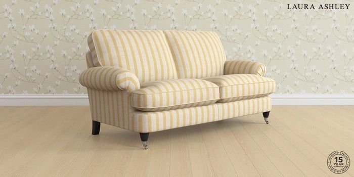7.3.1 Buy Beaumaris by Laura Ashley 3 Seater Small Sofa Kinsham Stripe Ochre Yellow Low Chrome Castor - Black from the Seasons online shop Click here to use our website with more accessibility support, for example screen readers