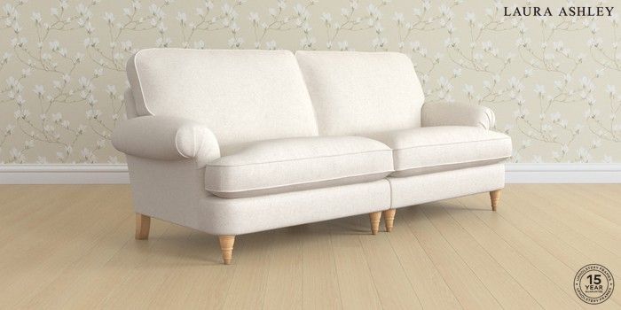 7.3.1 Buy Beaumaris by Laura Ashley 4 Seater Sofa Anneliese Oyster Natural Low Turned - Light Oak from the Seasons online shop Click here to use our website with more accessibility support, for example screen readers