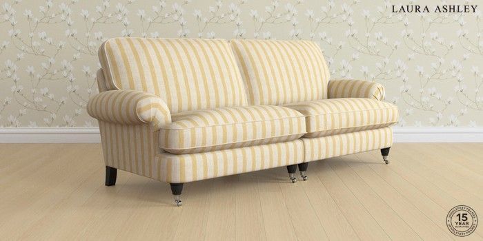 7.3.1 Buy Beaumaris by Laura Ashley 4 Seater Sofa Kinsham Stripe Ochre Yellow Low Chrome Castor - Black from the Seasons online shop Click here to use our website with more accessibility support, for example screen readers
