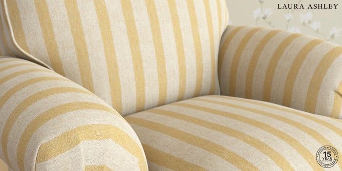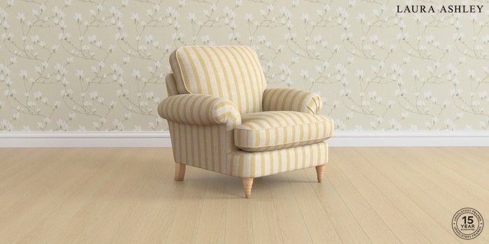 7.3.1 Buy Beaumaris by Laura Ashley Armchair Kinsham Stripe Ochre Yellow Low Turned - Light Oak from the Seasons online shop Click here to use our website with more accessibility support, for example screen readers