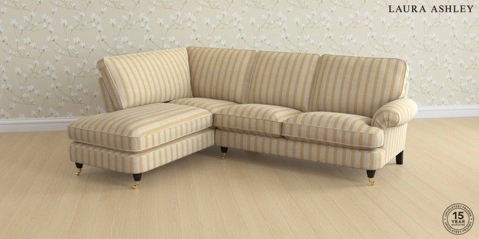 7.3.1 Buy Beaumaris by Laura Ashley Medium Sofa Chaise - Left Hand Kinsham Stripe Ochre Yellow Low Brass Castor - Black from the Seasons online shop Click here to use our website with more accessibility support, for example screen readers