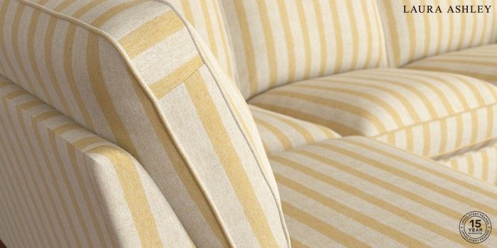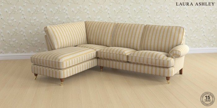 7.3.1 Buy Beaumaris by Laura Ashley Medium Sofa Chaise - Left Hand Kinsham Stripe Ochre Yellow Low Brass Castor - Teak from the Seasons online shop Click here to use our website with more accessibility support, for example screen readers
