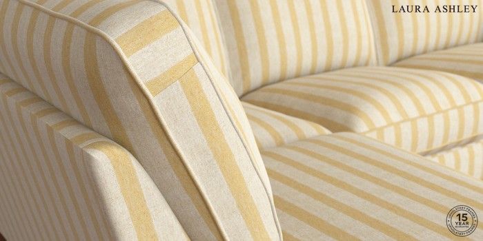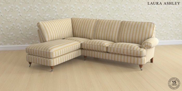 7.3.1 Buy Beaumaris by Laura Ashley Medium Sofa Chaise - Left Hand Kinsham Stripe Ochre Yellow Low Chrome Castor - Teak from the Seasons online shop Click here to use our website with more accessibility support, for example screen readers