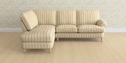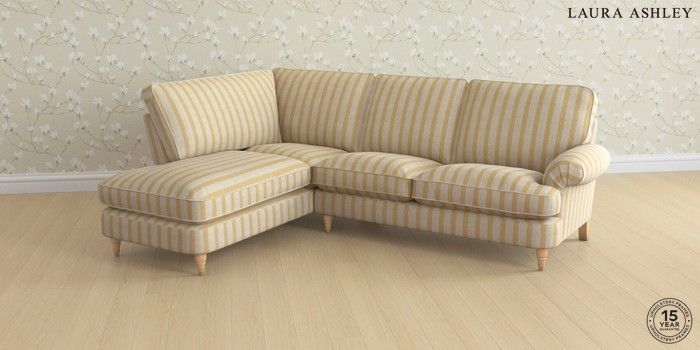 7.3.1 Buy Beaumaris by Laura Ashley Medium Sofa Chaise - Left Hand Kinsham Stripe Ochre Yellow Low Turned - Light Oak from the Seasons online shop Click here to use our website with more accessibility support, for example screen readers