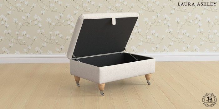7.3.1 Buy Beaumaris by Laura Ashley Storage Footstool Anneliese Oyster Natural Low Chrome Castor - Light Oak from the Seasons online shop Click here to use our website with more accessibility support, for example screen readers