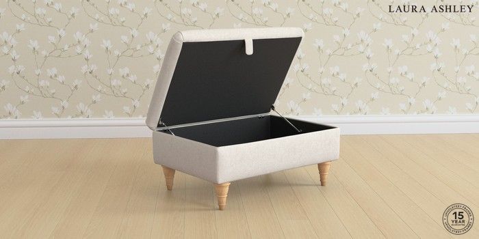 7.3.1 Buy Beaumaris by Laura Ashley Storage Footstool Anneliese Oyster Natural Low Turned - Light Oak from the Seasons online shop Click here to use our website with more accessibility support, for example screen readers