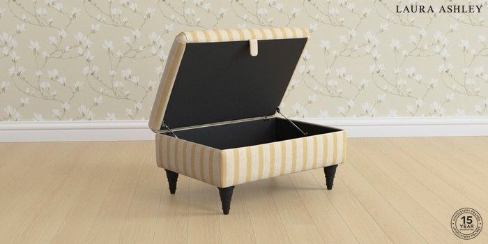 7.3.1 Buy Beaumaris by Laura Ashley Storage Footstool Kinsham Stripe Ochre Yellow Low Turned - Black from the Seasons online shop Click here to use our website with more accessibility support, for example screen readers