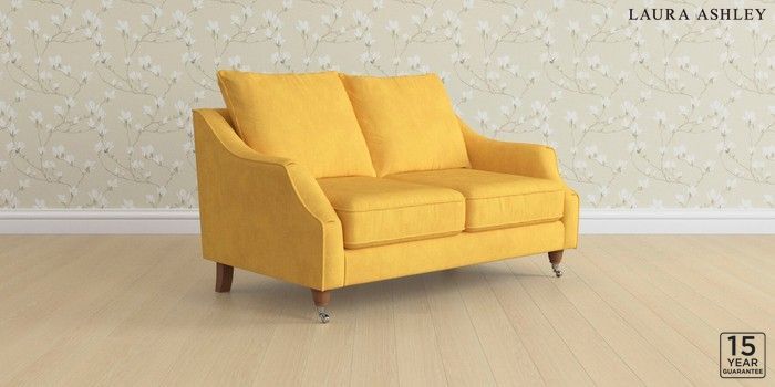 7.3.1 Buy Beverley by Laura Ashley 2 Seater Sofa Bainton Ochre Yellow Low Chrome Castor - Teak from the Seasons online shop Click here to use our website with more accessibility support, for example screen readers