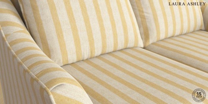 7.3.1 Buy Beverley by Laura Ashley 2 Seater Sofa Kinsham Stripe Ochre Yellow Low Brass Castor - Black from the Seasons online shop Click here to use our website with more accessibility support, for example screen readers
