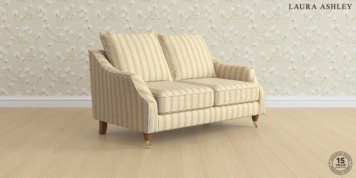 7.3.1 Buy Beverley by Laura Ashley 2 Seater Sofa Kinsham Stripe Ochre Yellow Low Brass Castor - Teak from the Seasons online shop Click here to use our website with more accessibility support, for example screen readers