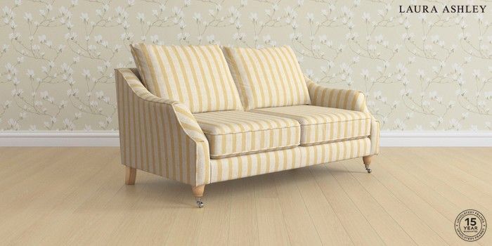 7.3.1 Buy Beverley by Laura Ashley 3 Seater Small Sofa Kinsham Stripe Ochre Yellow Low Chrome Castor - Light Oak from the Seasons online shop Click here to use our website with more accessibility support, for example screen readers