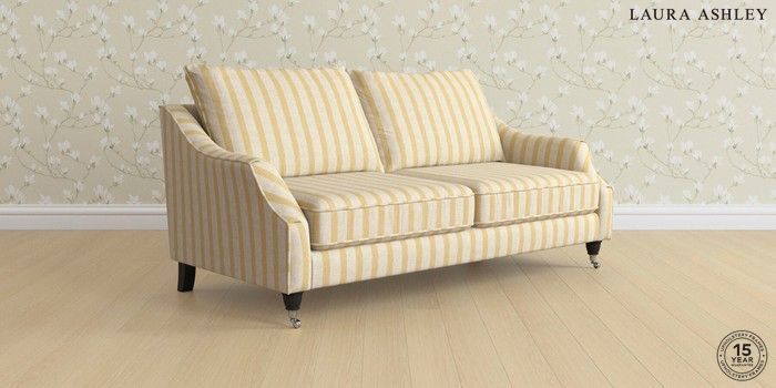 7.3.1 Buy Beverley by Laura Ashley 3 Seater Sofa Kinsham Stripe Ochre Yellow Low Chrome Castor - Black from the Seasons online shop Click here to use our website with more accessibility support, for example screen readers