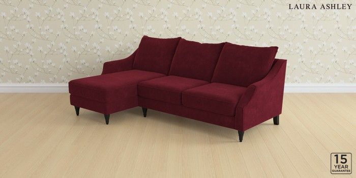 7.3.1 Buy Beverley by Laura Ashley Medium Sofa Chaise - Left Hand Alwyn Velvet Burgundy Red Low Turned - Black from the Seasons online shop Click here to use our website with more accessibility support, for example screen readers